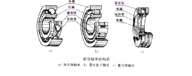 滾動軸承一般由外圈、 內(nèi)圈、 滾動體 和 保持架 四部分組成,嚴(yán)格的說是由外圈、內(nèi)圈、滾動體、保持架、密封、潤滑油 六大件組成。簡單來說,只要具備外圈、內(nèi)圈、滾動體就可定義為為滾動軸承。按滾動體的形狀,滾動軸承分為 球軸承 和 滾子軸承 兩大類。