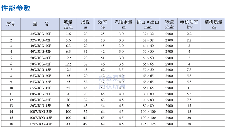 皖金泵閥襯氟磁力管道泵主要參數: