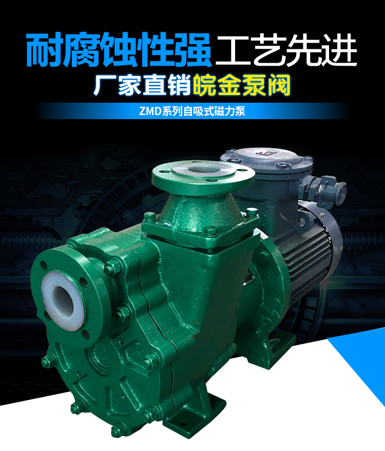 氟塑料磁力自吸泵又稱其為氟塑料自吸磁力泵、襯氟磁力自吸泵、耐腐蝕自吸化工泵,ZMD襯氟磁力自吸泵具有磁力泵的特性,同時兼具良好的自吸功能。