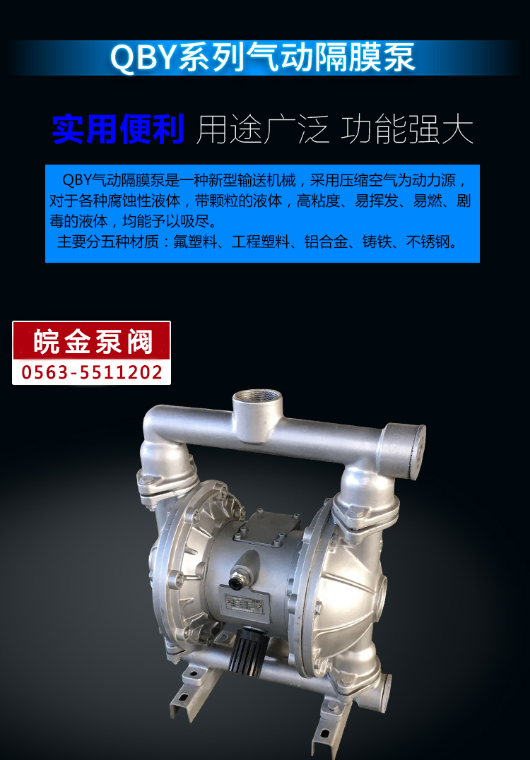 QBY氣動隔膜泵既能抽送流動的液體,又能輸送一些不易流動的介質(zhì),具有自吸泵、潛水泵、屏蔽泵、泥漿泵和雜質(zhì)泵等輸送機械的許多優(yōu)點。