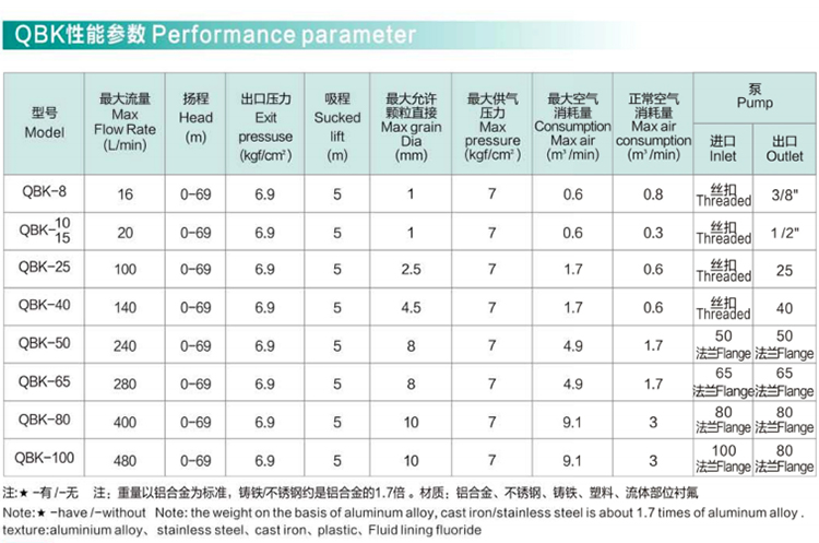 皖金泵閥氣動隔膜泵主要參數(shù):