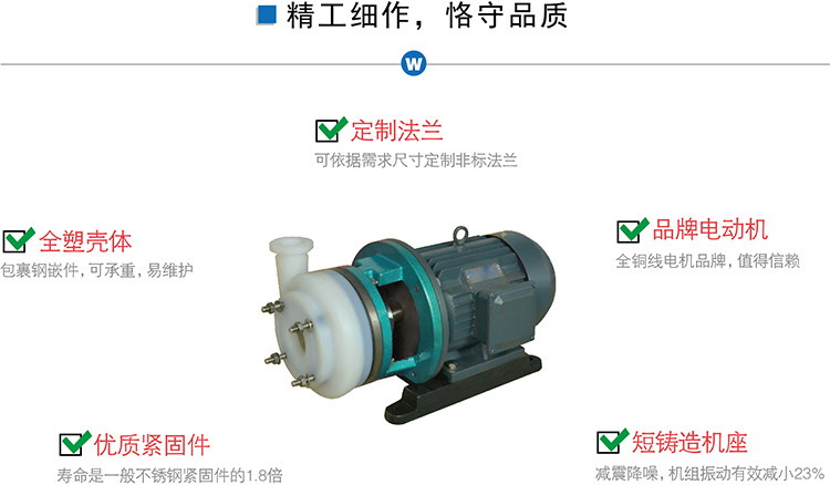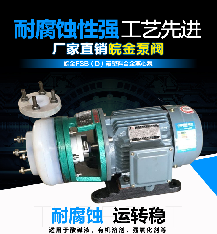 FSB短支架氟塑料離心泵,整機設計輕巧,結構緊湊,節省使用場地,依工況要求可選用氟塑料、氟合金等材料。