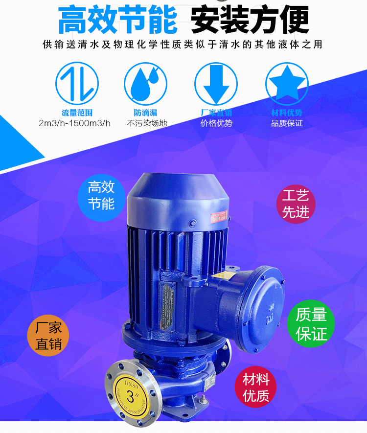 WJLG立式管道離心泵供輸送清水及物理化學性質類似于清水的其它液體之用,適用于工業和城市給排水、高層建筑增壓送水、園林噴灌、消防增壓、遠距離輸送、暖通制冷循環、冷暖水循環增壓及設備配套,正常使用溫度<100℃,100℃以上配制耐高溫材料。